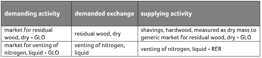 - The table below shows dataset making a demand of a product that is not supplied by the specified supplying activity. These two exchanges can be ignored.
