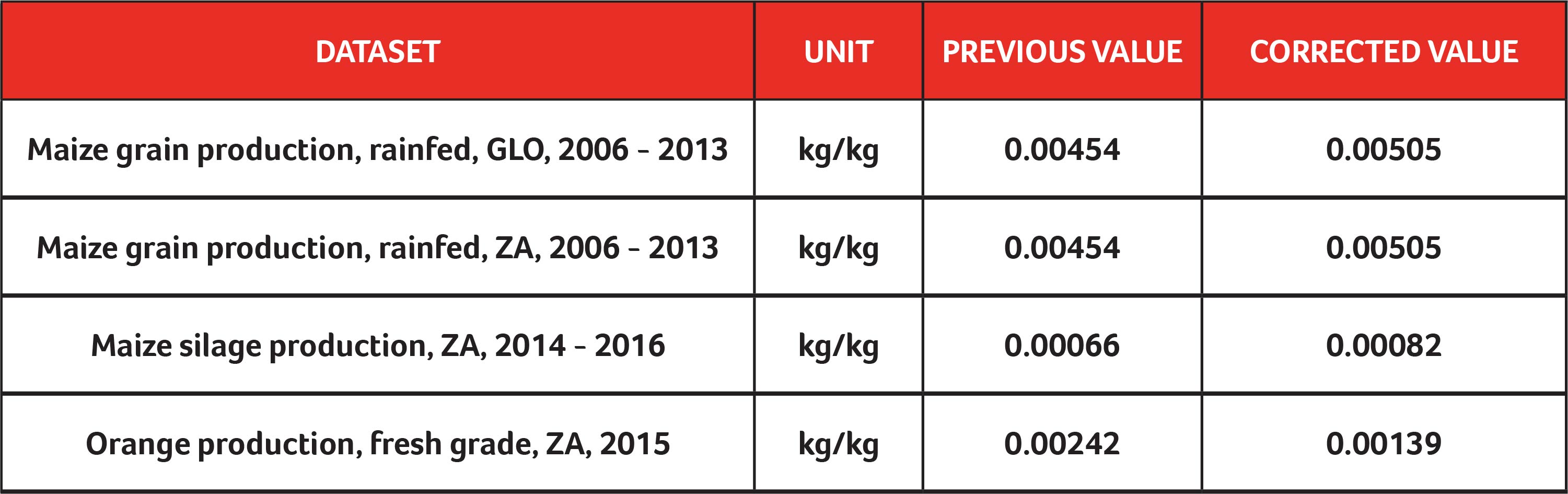 - Five agricultural datasets were identified to have inconsistent amounts of nitrate emissions to ground water. The correct amounts are shown below. The correction will be available with the release of v3.7.