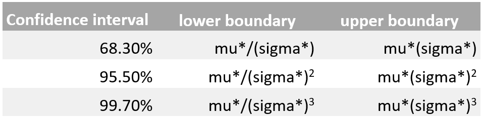exp((Variance of log-transformed data)0.5)2, corresponding to the square of sigma*.
