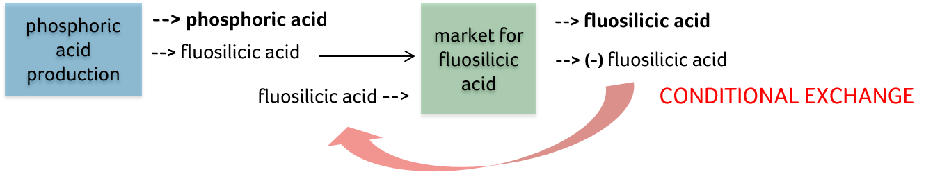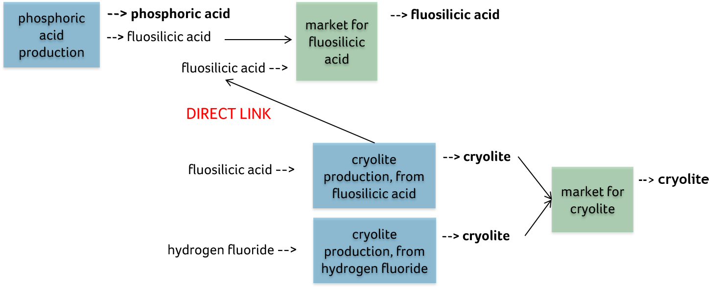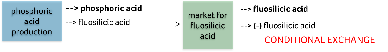 During linking of the constrained market, the linking routine activates the conditional exchange with its direct activity link to the cryolite production from fluosilic acid, and as any other by-product the conditional exchange is shifted to the input side, its negative sign turned positive, i.e. representing an input from the directly linked activity.